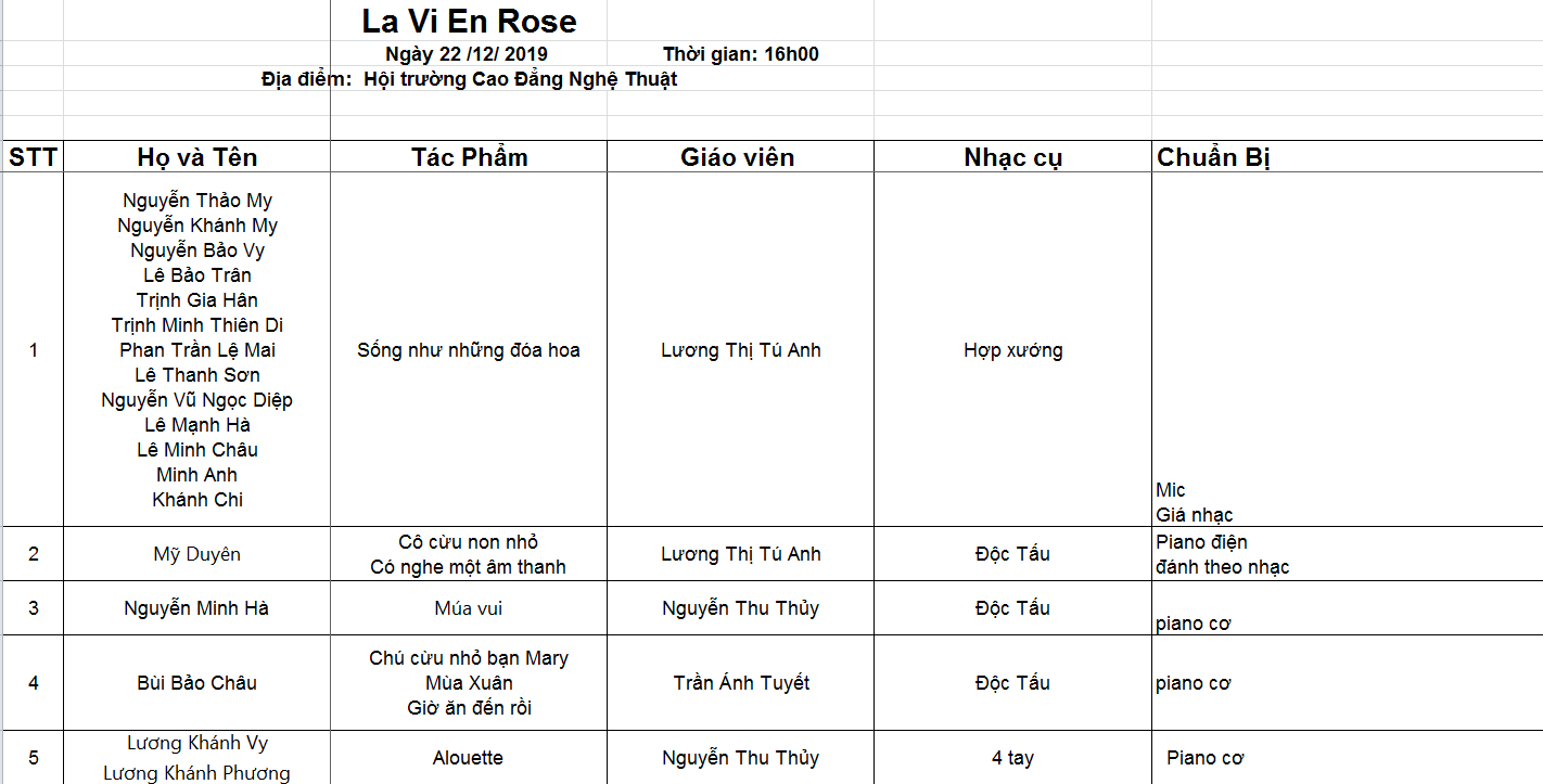 Trong không khí vui tươi, hân hoan sau những thành tích đạt được qua quá trình dài học tập và rèn luyện, Việt Thương Music Shool tự hào tổ chức chương trình biểu diễn nghệ thuật Lavie En Rose vào lúc 16h ngày 22/12/2019 tại Hội trường Cao Đẳng Nghệ Thuật, số 7 Hai Bà Trưng, Hà Nội.
